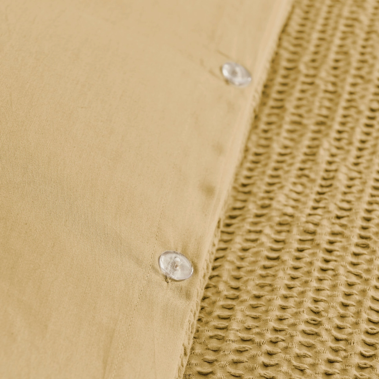 Made with a soft and luxurious cotton, this duvet cover/comforter set features a cuddly waffle pattern. It has a textured waffle weave on the front and a solid cotton on the reverse. The duvet cover closes with easy to use, durable buttons.