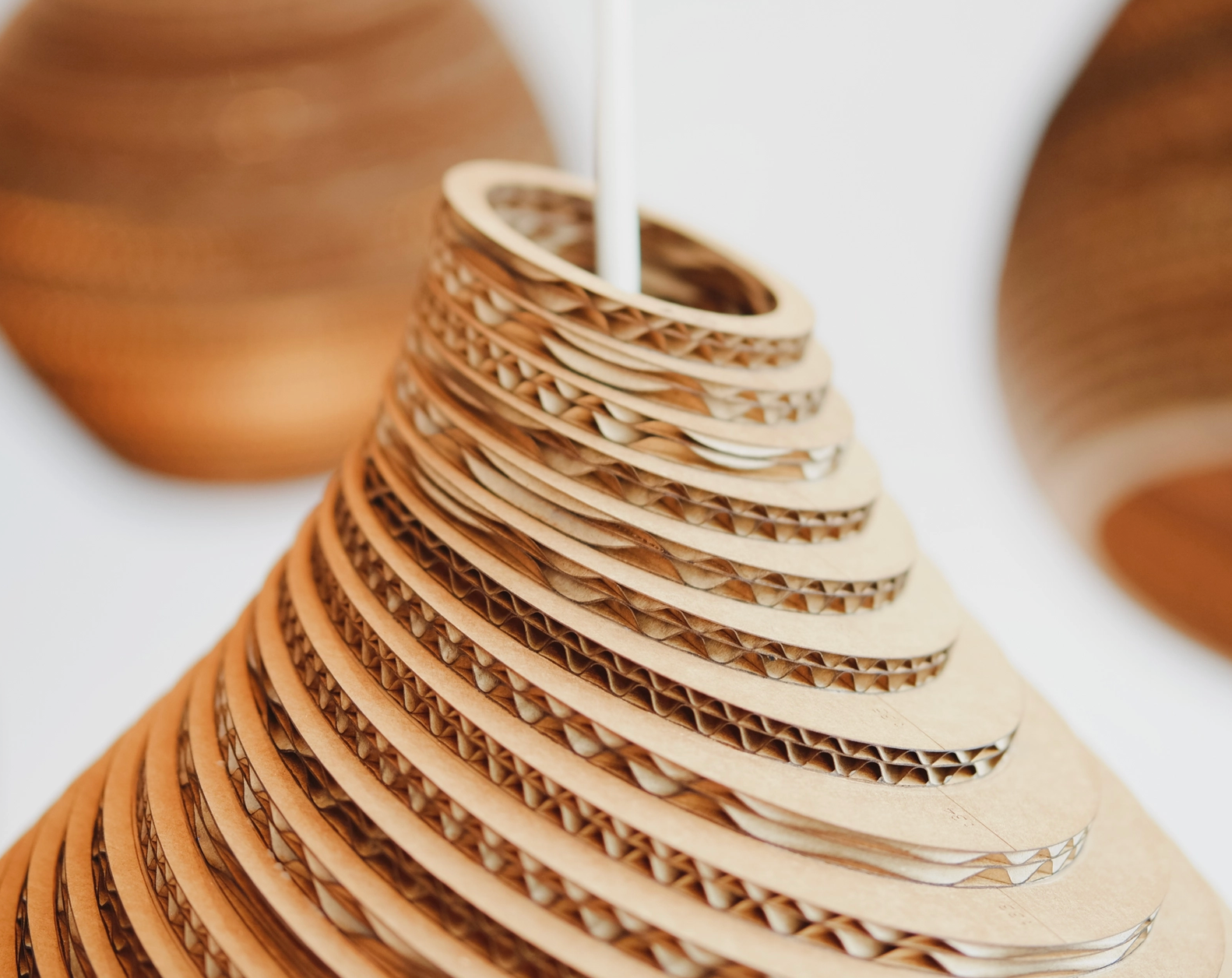 Handcrafted from recycled or pure white cardboard, Scraplights series provides warm, intimate, and functional lighting for any occasion or type of space. Tough and elegant, each shade is precision cut with a laser (natural & blonde shades) or precision cut on advanced machinery (white shades) and assembled by hand using a nontoxic adhesive. All Scraplights are treated with an environmentally friendly fire retardant and are inscribed with the name of their artisan maker!