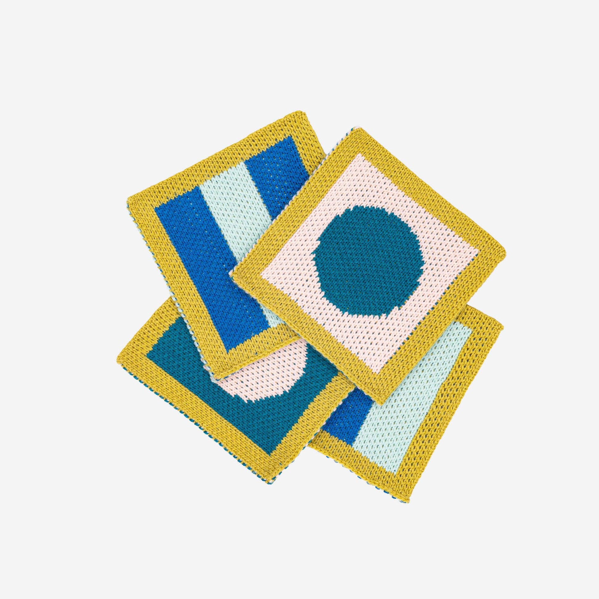 For your next dinner party or cute coffee table upgrade. Set of 4 coasters with bold mismatched patchwork patterning.